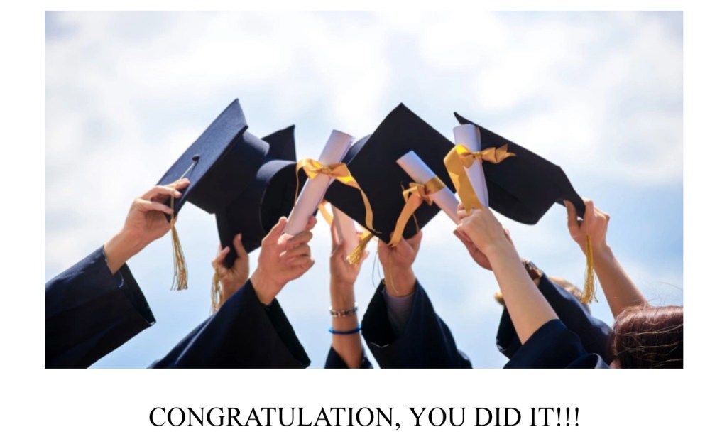 Congratulations for all your work this year, you have finally graduated from 6th grade and next year you will start a new life in high school. You are all ready, you will do great and I wish for you kindness, hard work and compromise with your responsibilities, since they will demonstrate you who you really are.